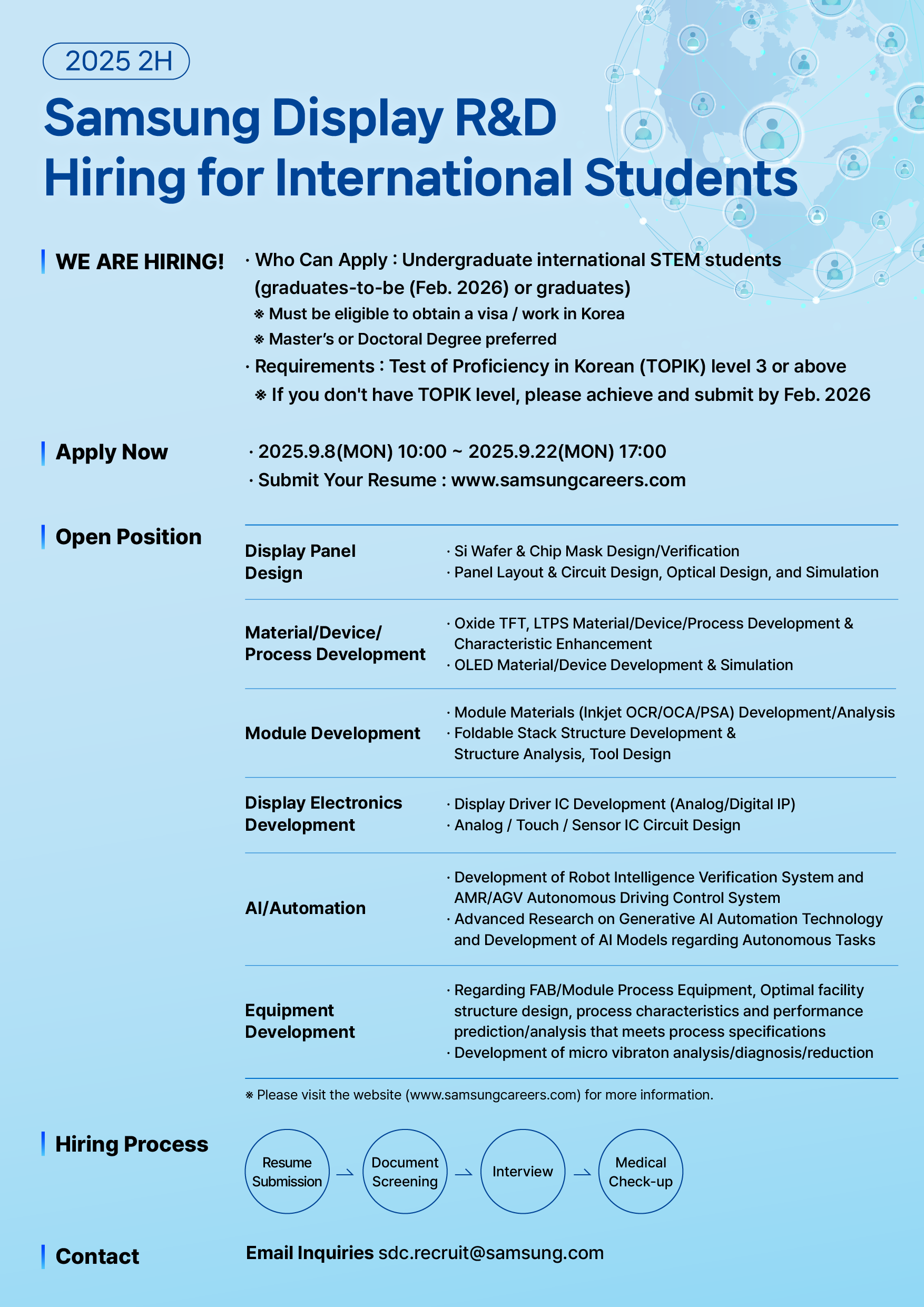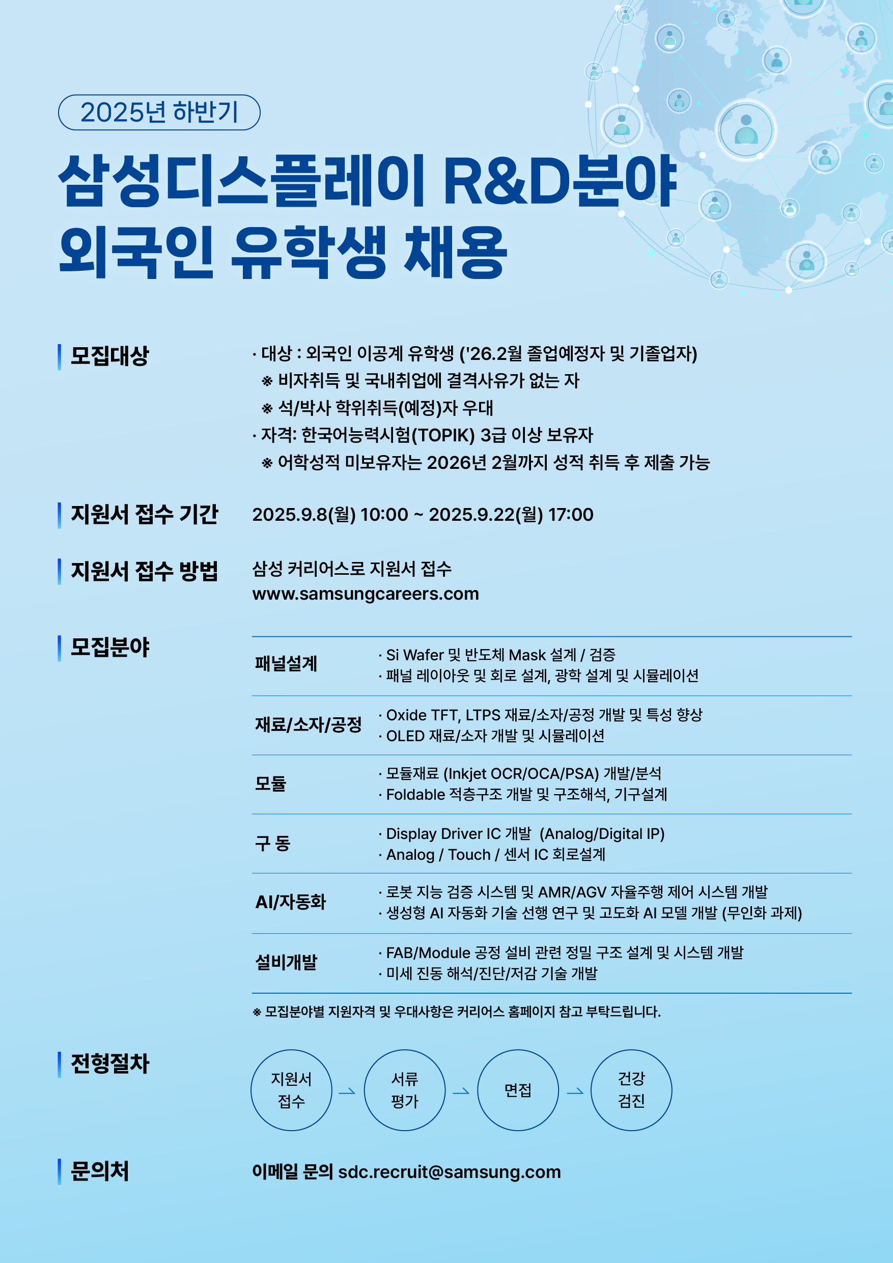 2025년 하반기 삼성디스플레이 외국인 유학생 채용 안내