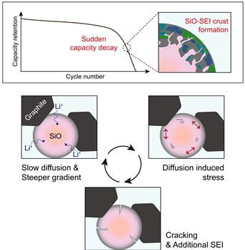 *논문명 : Origins of Abrupt Capacity Degradation in Lithium-Ion Batteries with Silicon-Based Anodes