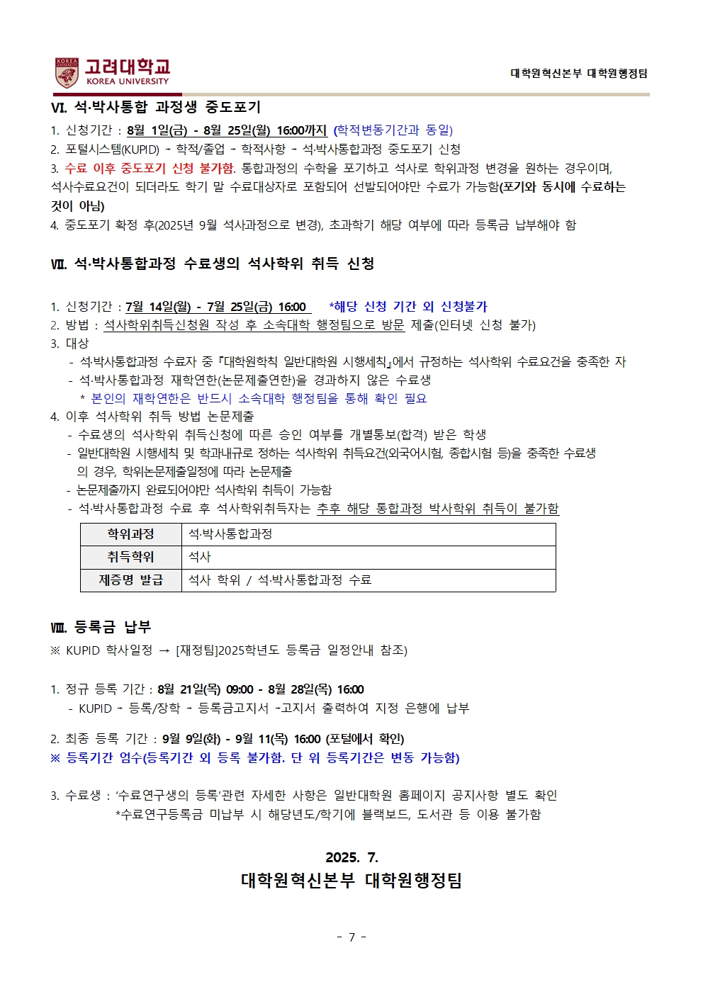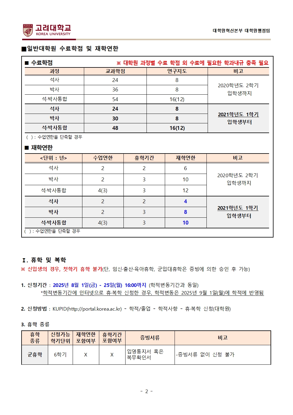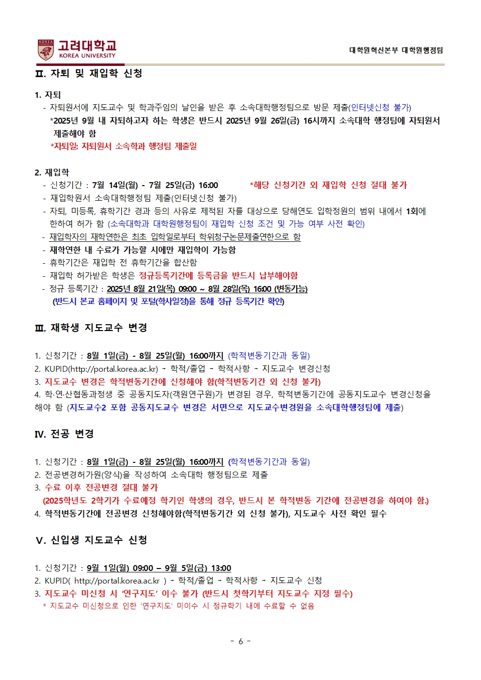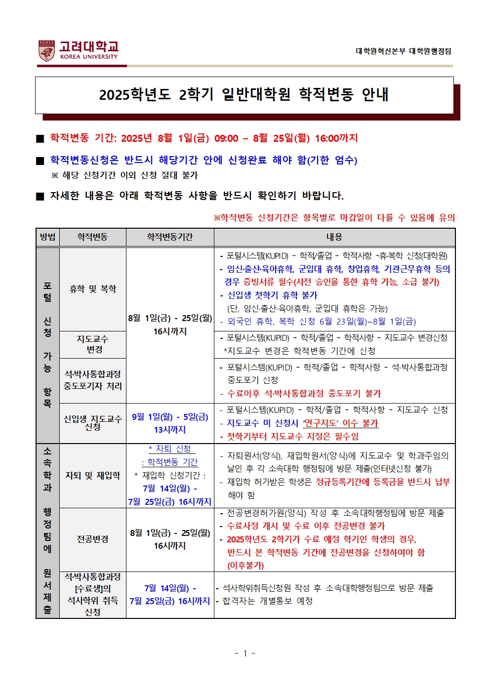 제목[학적] 2025-2학기 일반대학원 학적변동 안내(8/1-25)2025-07-01 14:27